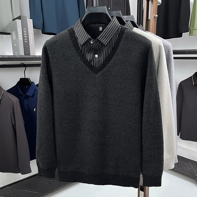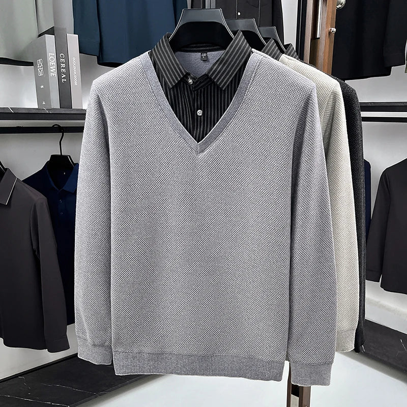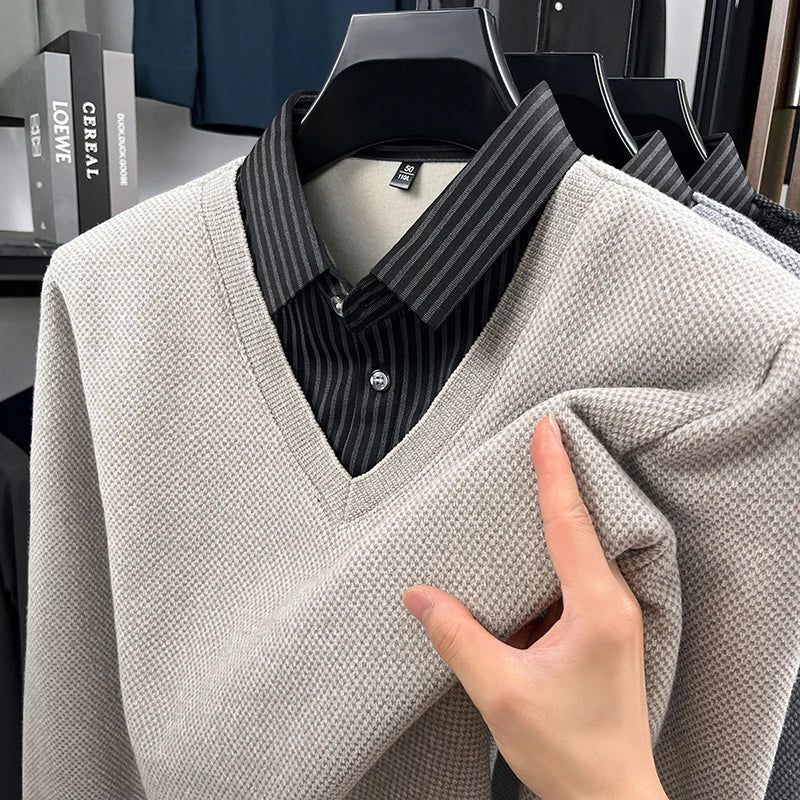 RUBYRU Men's Thickened Velvet Fake Two-Piece T-Shirt | Winter Knit Top
